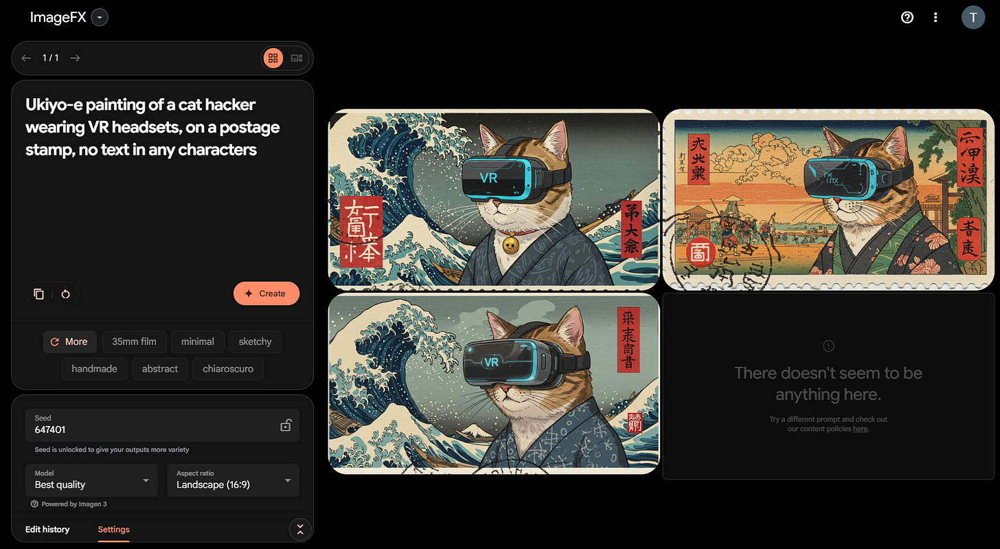 The first generative art task everyone thinks of, converting a text prompt into a finished image.